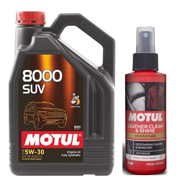 MOTUL 8000 SUV 5W30 Engine Oil 5L + Motul Leather Clean & Shine 100ml Combo Pack