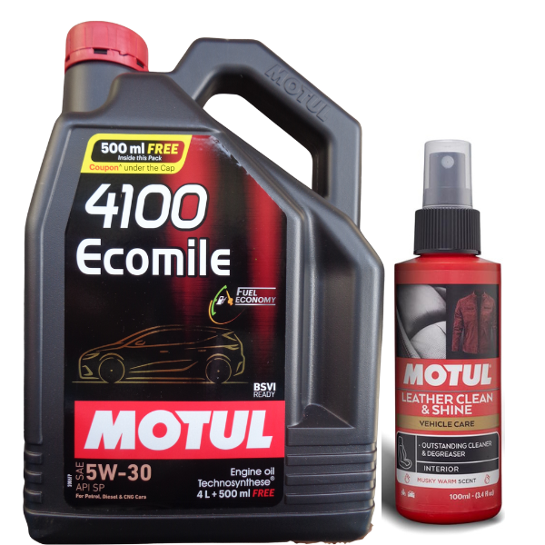 The perfect blend of efficiency and value. This combo includes a 4.5L bottle of ECOMILE 5W30 low-SAPS engine oil for superior fuel economy and a Leather Clean & Shine to revitalize your interior. Smart care for the cost-conscious driver.