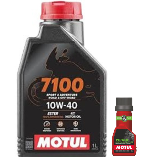 Motul 7100 4T Fully Synthetic 10W-40 Petrol Engine Oil for Bikes 1 L And Petrol System Clean (50ml) Combo